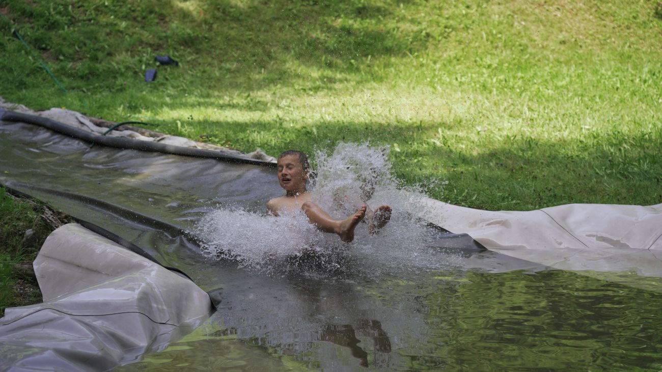 - Auf dem Gelände gibt es einen grossen Spielplatz, Spielwiese, Trampolin, Wasserrutschbahn und Seilbahn für Kinder, Tischtennis und Tischfussball, Grillstelle etc.